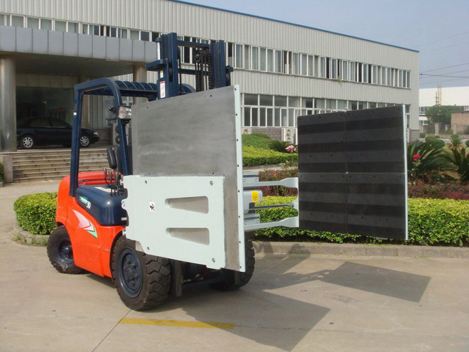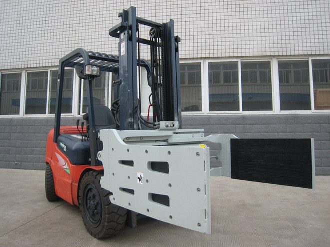 1, hydraulic system: the rotation of hydraulic oil on the road with two-way lock, in order to achieve two-way hydraulic self-locking, ensuring safety at work; motors, valves and seals imported products are used, rotation, oil hinges with self-locking function; high-pressure plastic high performance sealed tube hose with cone. 2, structural parts: the left and right plates using high-performance steel plates, shaped by the overall pressure and correction, good bending performance. 3, mechanical performance: You can also achieve clamp / open and rotate functions, and better vision; additional oil line can meet the requirements of the two groups. 4 Application: safe and efficient handling of various boxes, crates, metal boxes or soft packs the goods. Apply to tobacco, paper, chemical fiber, plant, port and other industries operating without pallet handling or stacking.